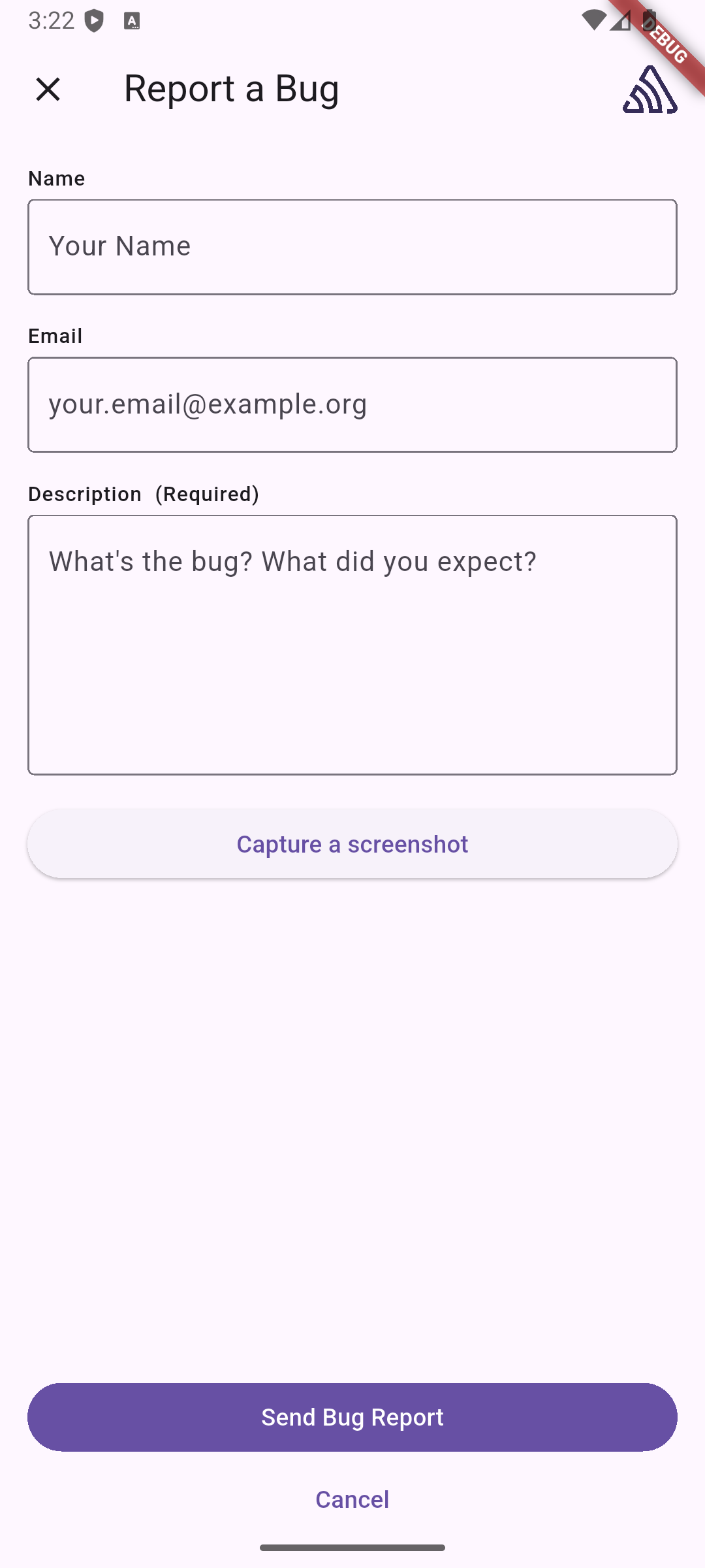| submitButtonLabel | String | 'Send Bug Report' | The label of the submit button. |