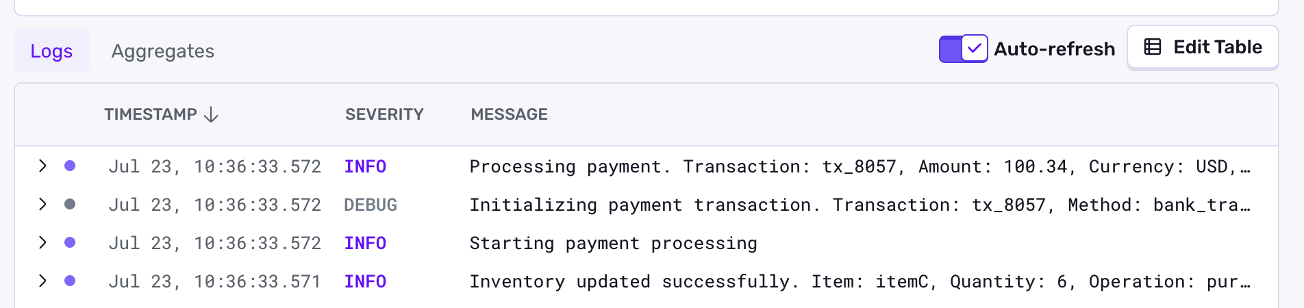 You can also enable auto refreshing of the logs view to see your latest logs as they come in.